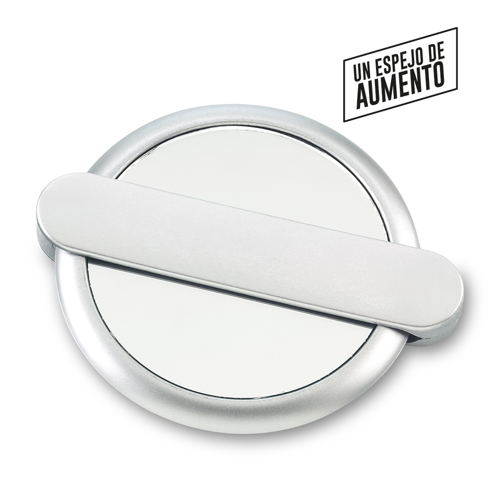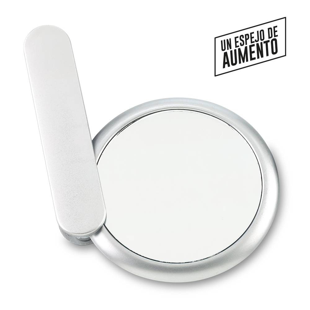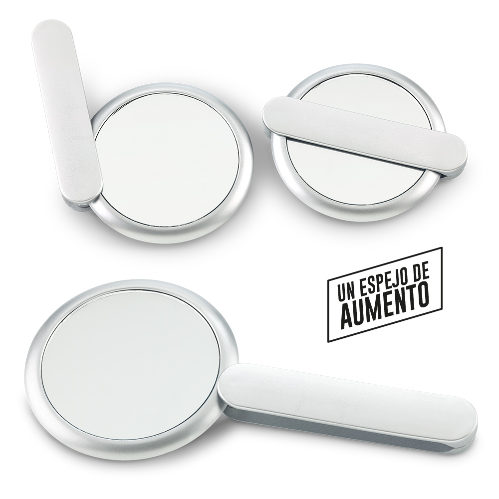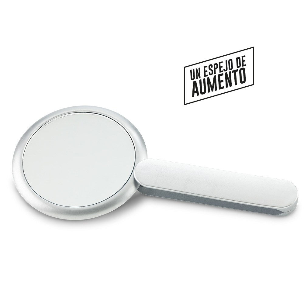 Espejo plástico doble un espejo de aumento Medidas: 8 cm diámetro Marca: 5,5 cm / Tampografía en el mango
